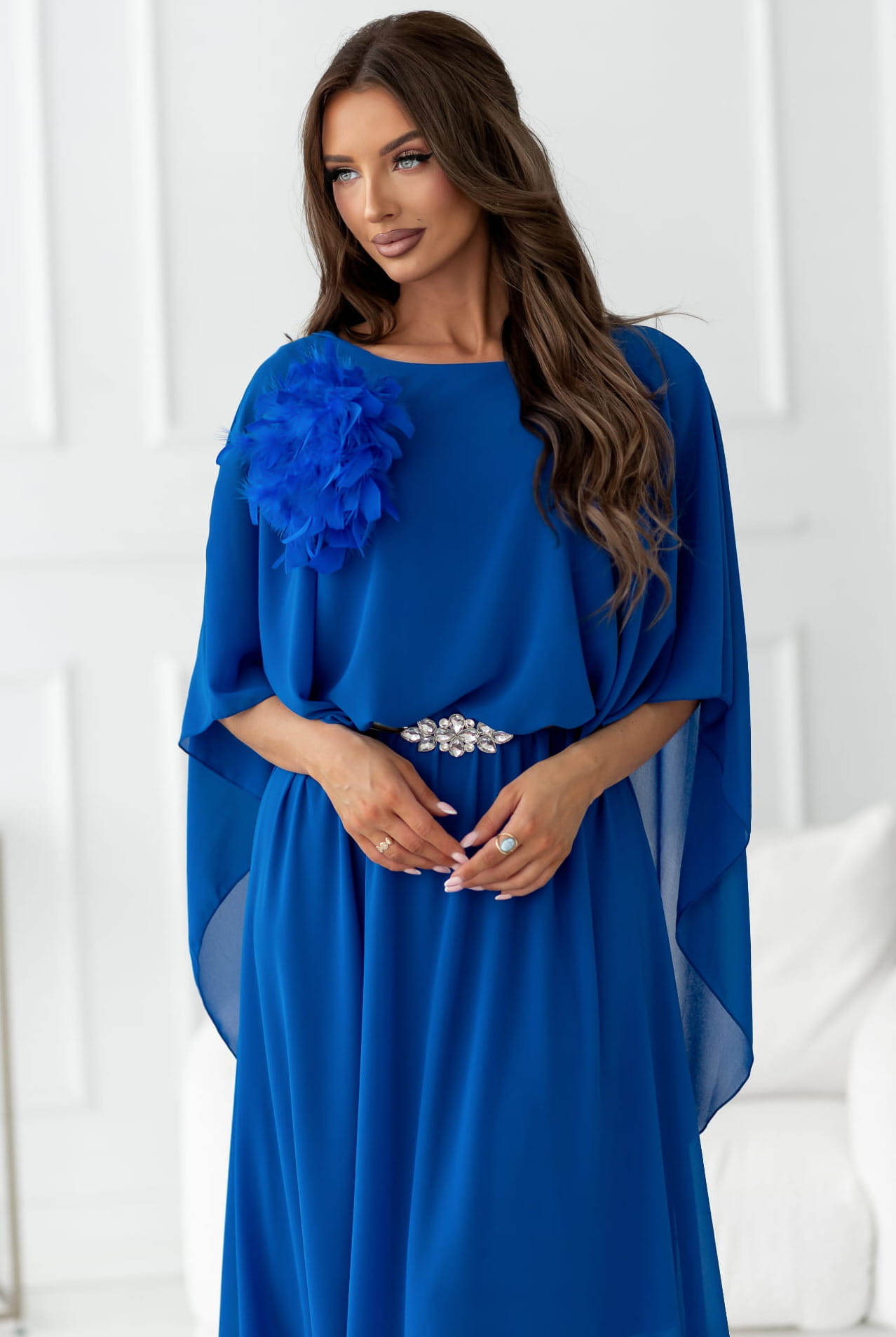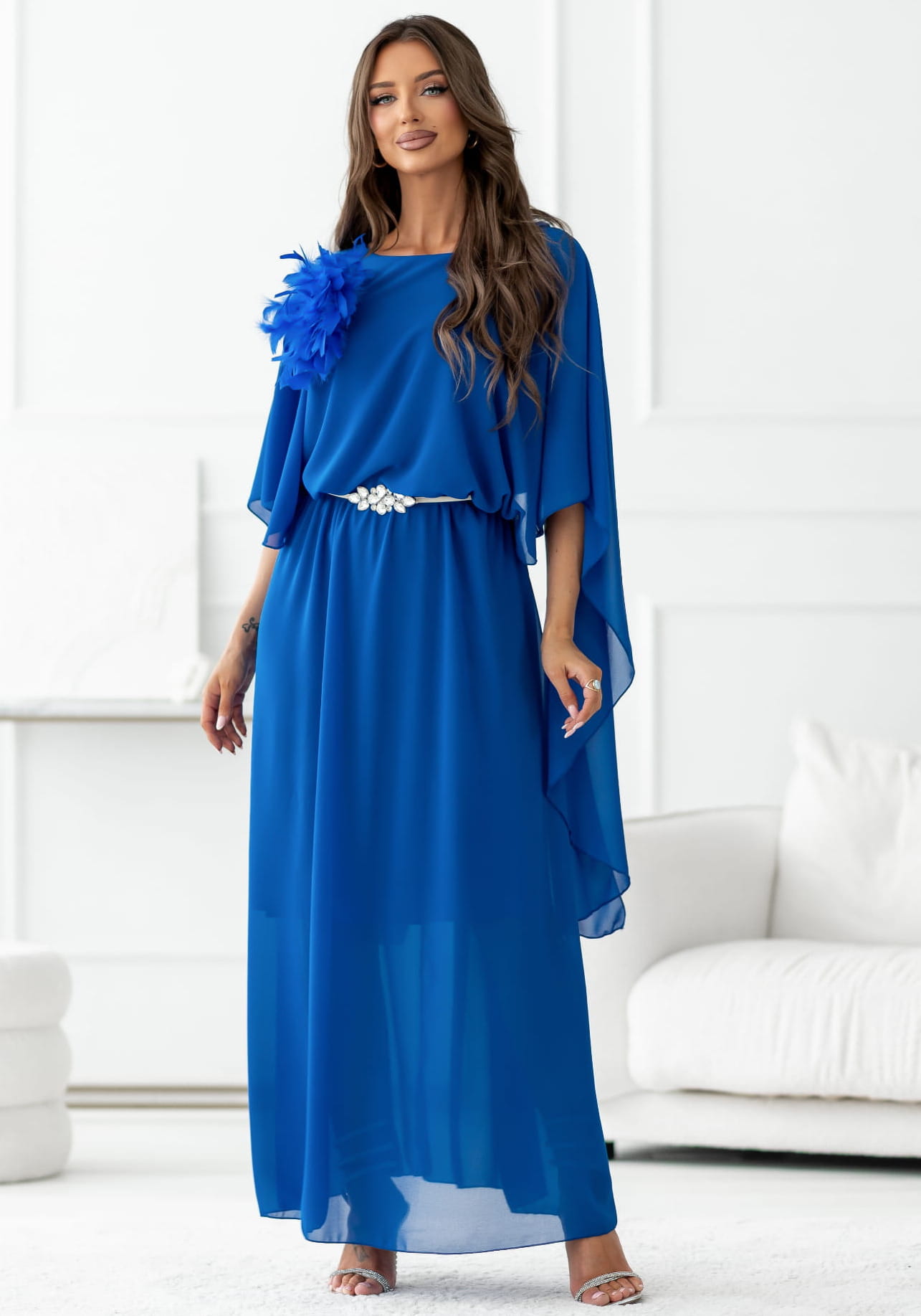 DUŻY ROZMIAR Sukienka NIMFA Maxi z efektownym rękawem chabrowa