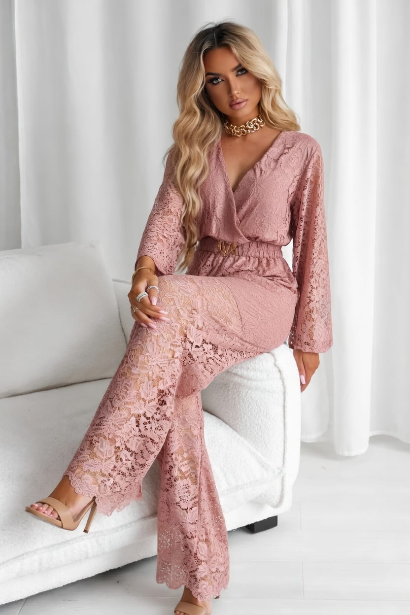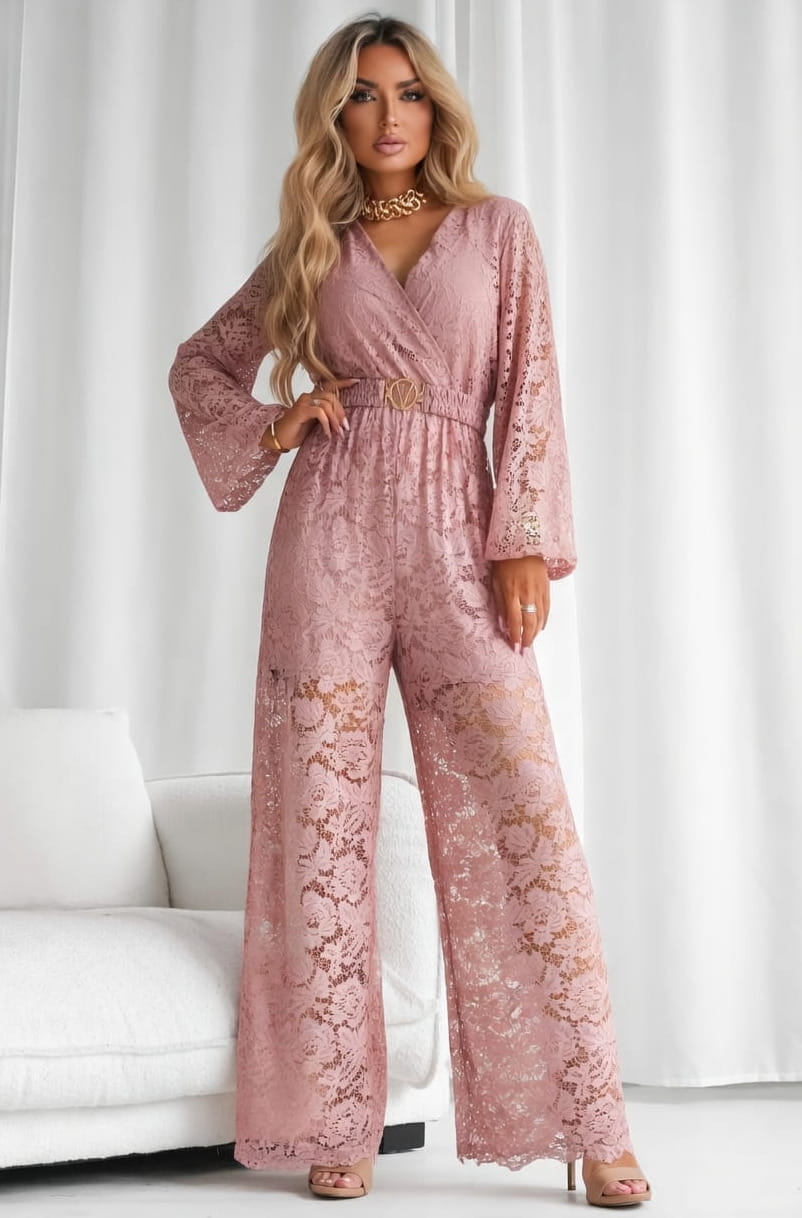 Podkreśl swoją kobiecość i wyrafinowany styl z naszym oszałamiającym koronkowym kombinezonem w odcieniu pudrowego rózu. Ten niezwykły jednoczęściowy strój to kwintesencja elegancji, komfortu i nowoczesnego designu, idealny na wieczorne wyjścia, uroczystości czy randki.