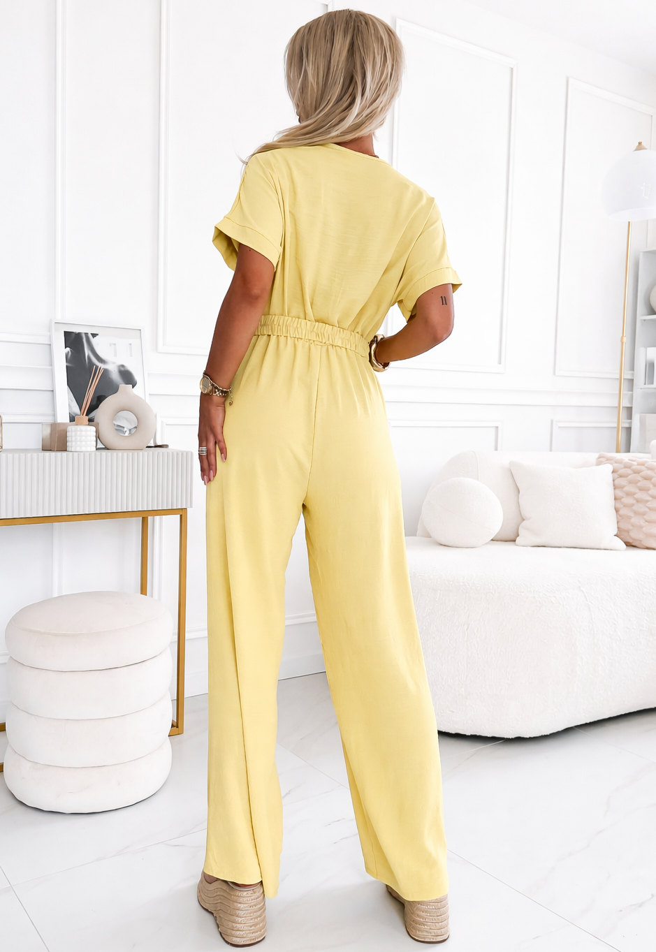 Włoski kombinezon o eleganckim i klasycznym kroju ,w pasie gumka i pasek w komplecie ze złotą sprzączką.