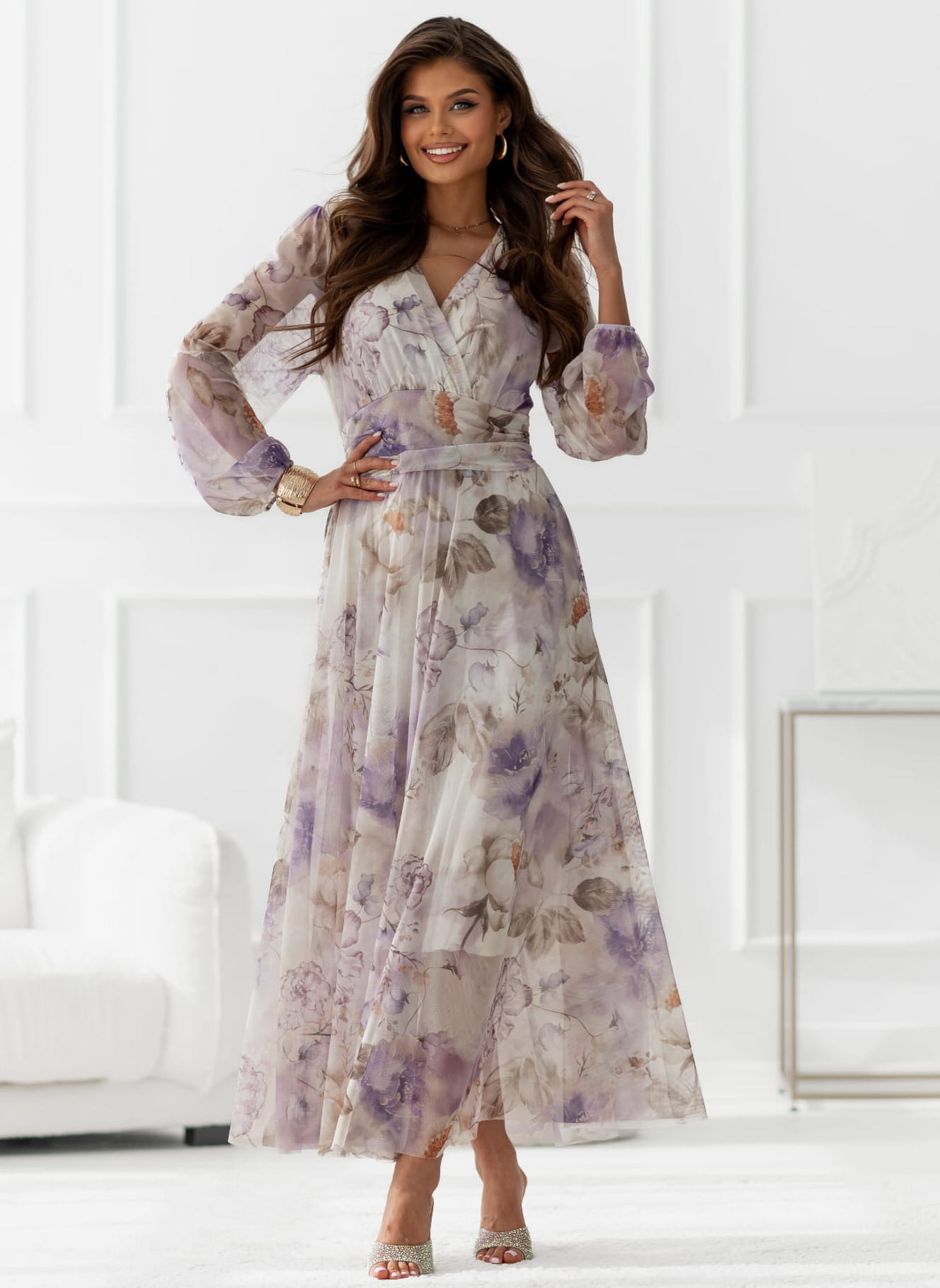 Sukienka Amy Maxi z długim rękawem w peonie kolor 3