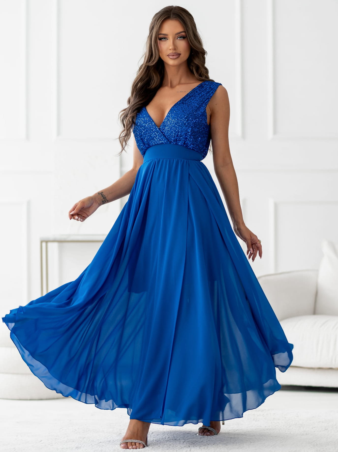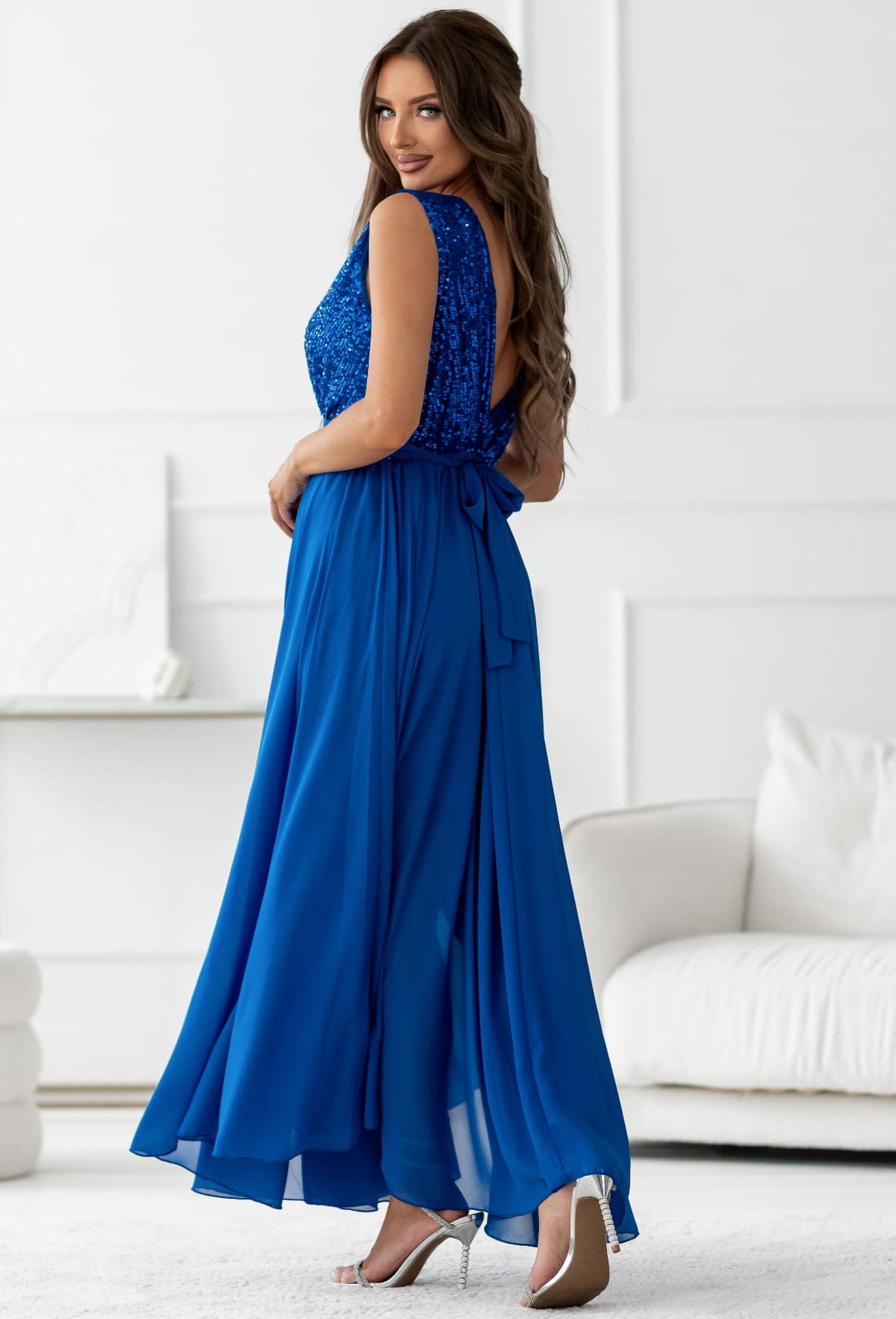 Spektakularny wygląd: Cekiny i wysokie rozcięcie gwarantują niezapomniane wrażenie.