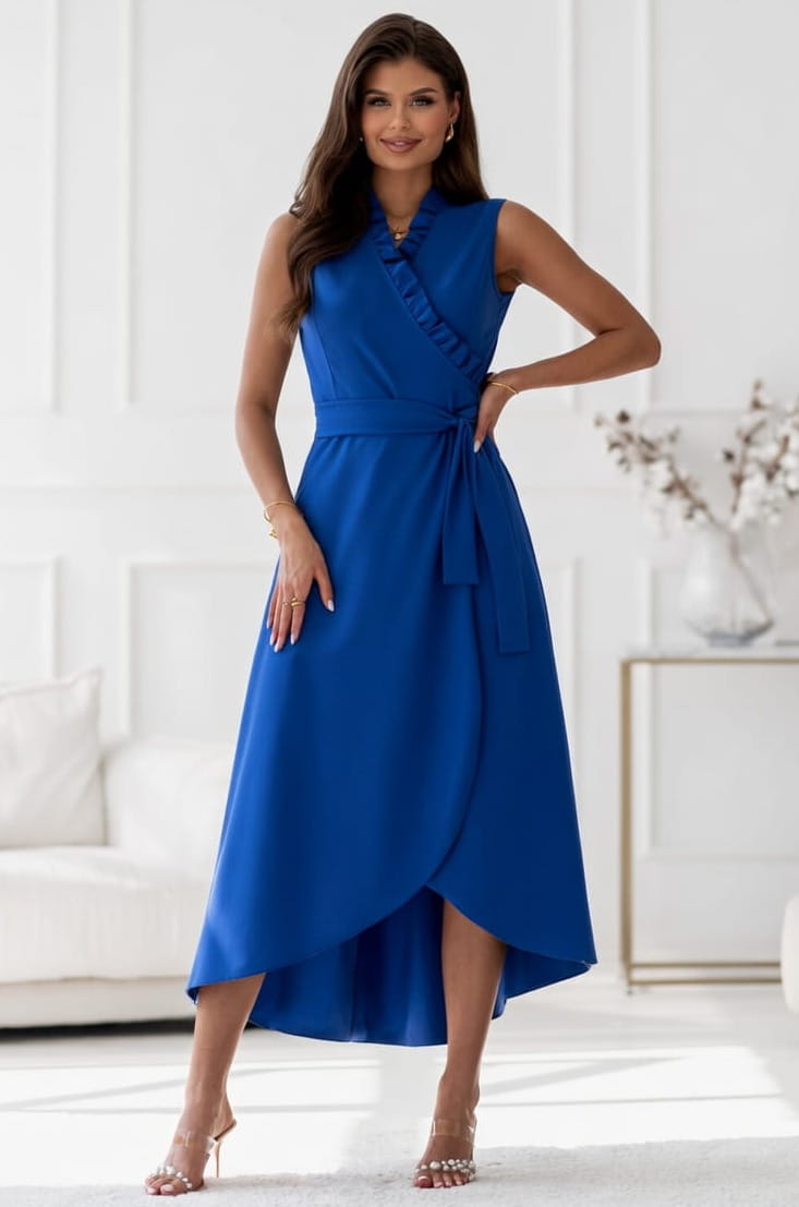Sukienka Eden kopertowa z wiązaniem MIDI chabrowa