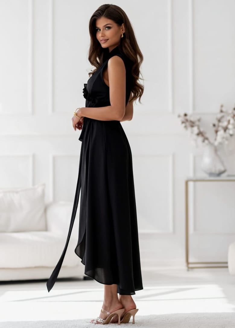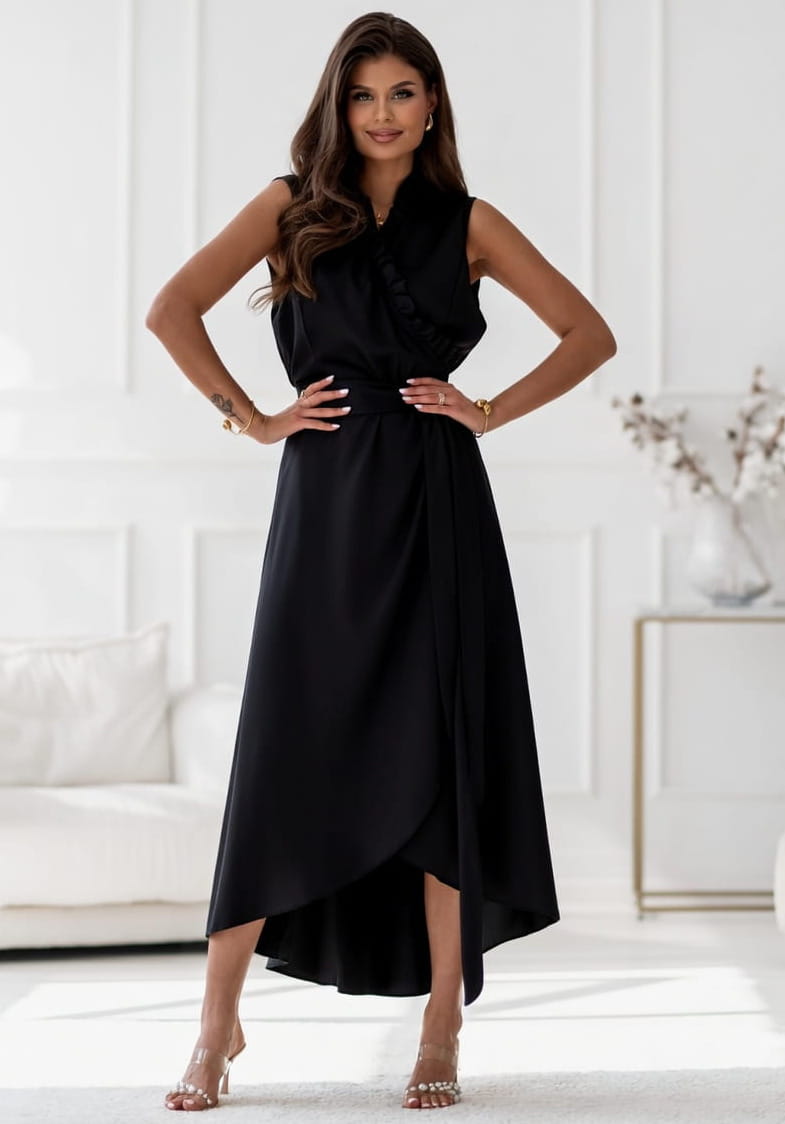 Sukienka Eden kopertowa z wiązaniem MIDI czarna