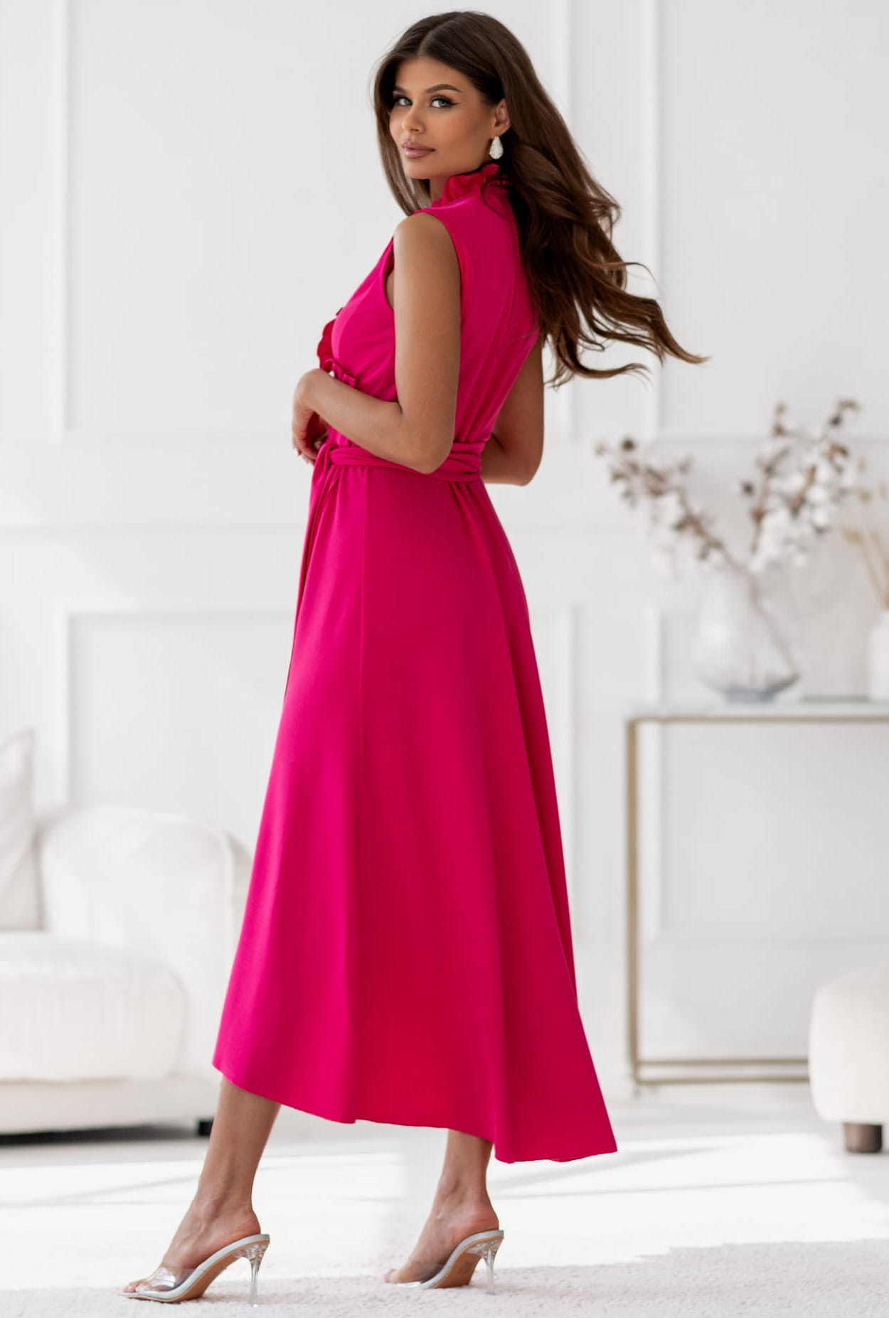 Sukienka Eden kopertowa z wiązaniem MIDI fuksja