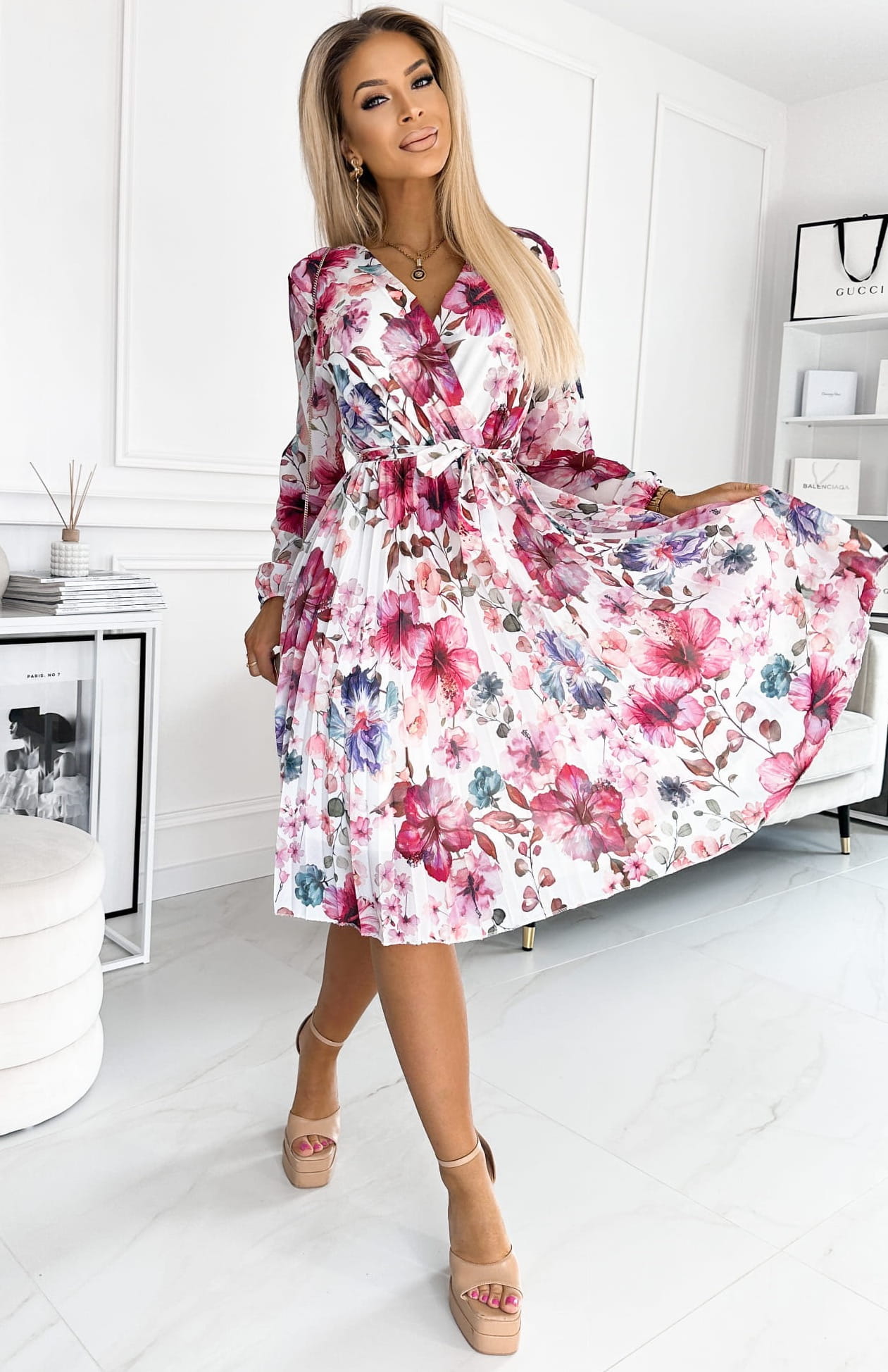 Sukienka Kopertowa Plisa Hibiskus biała OVERSIZE