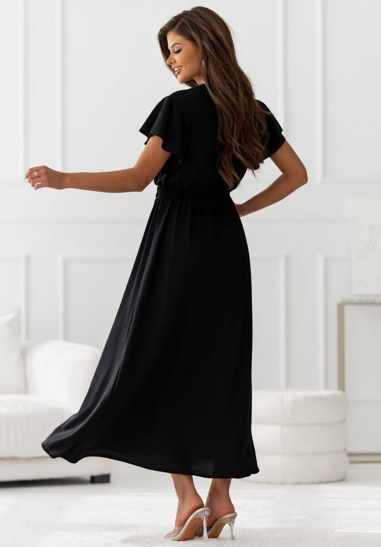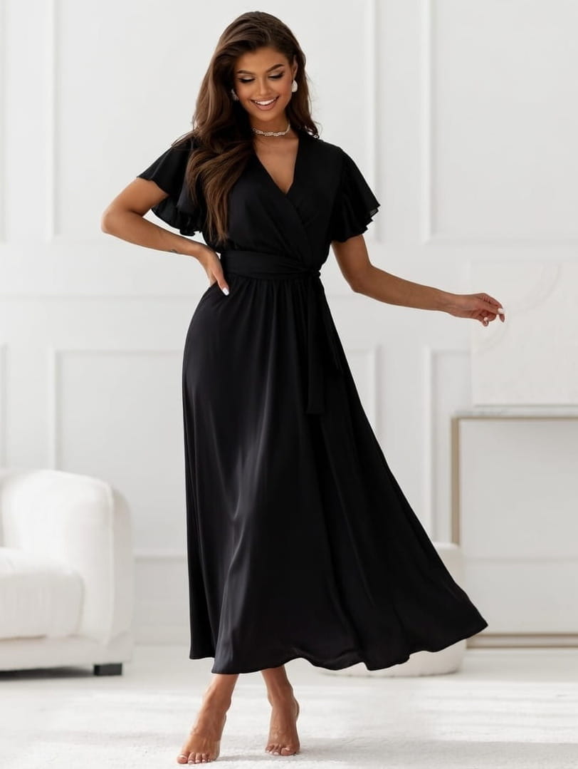 Sukienka Maxi satyna piórka czarna
