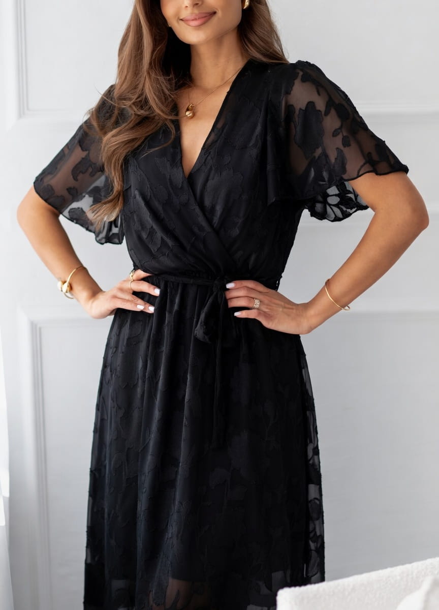 Sukienka Sora efektowna tkanina 3D MIDI czarna
