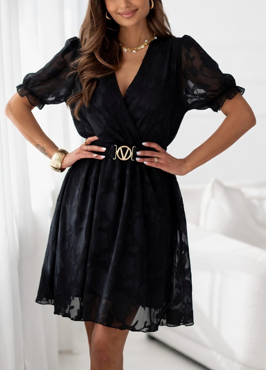 Sukienka Sora efektowna tkanina 3D MINI z paskiem czarna