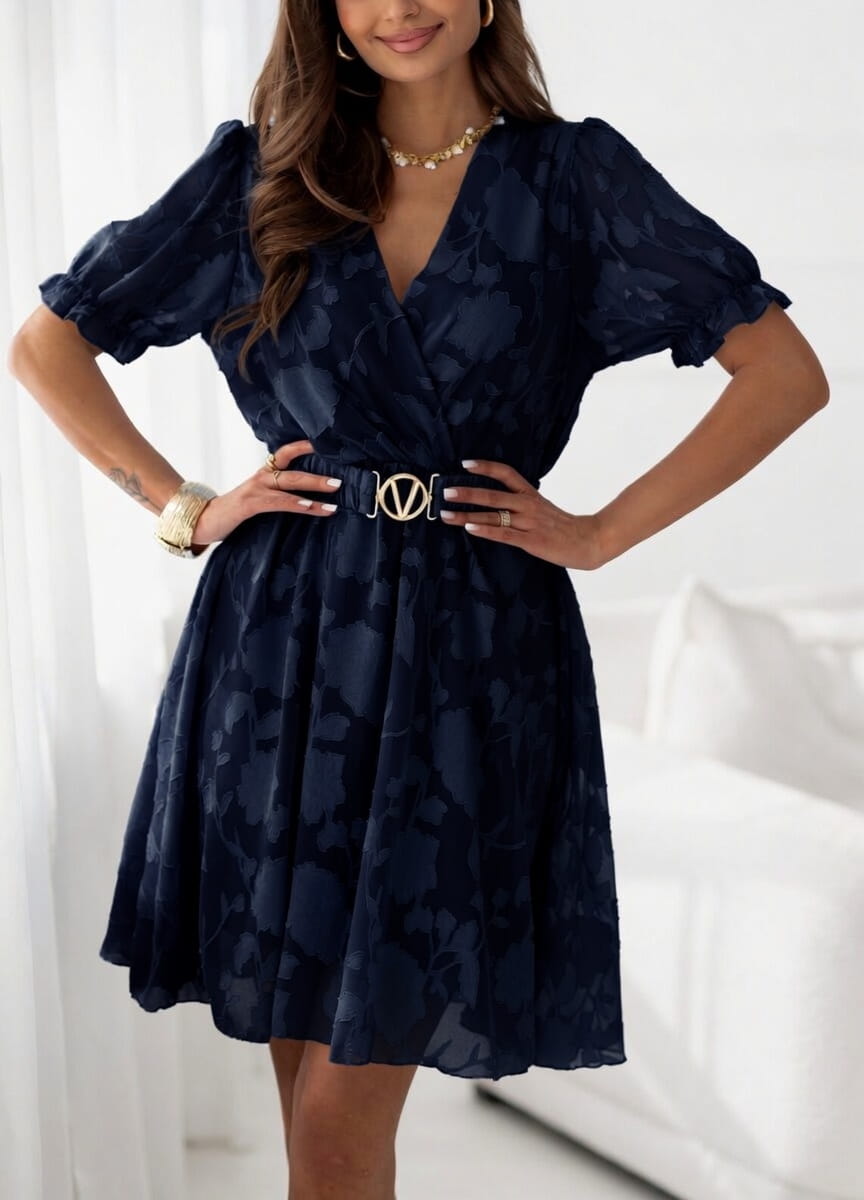 Sukienka Sora efektowna tkanina 3D MINI z paskiem granatowa