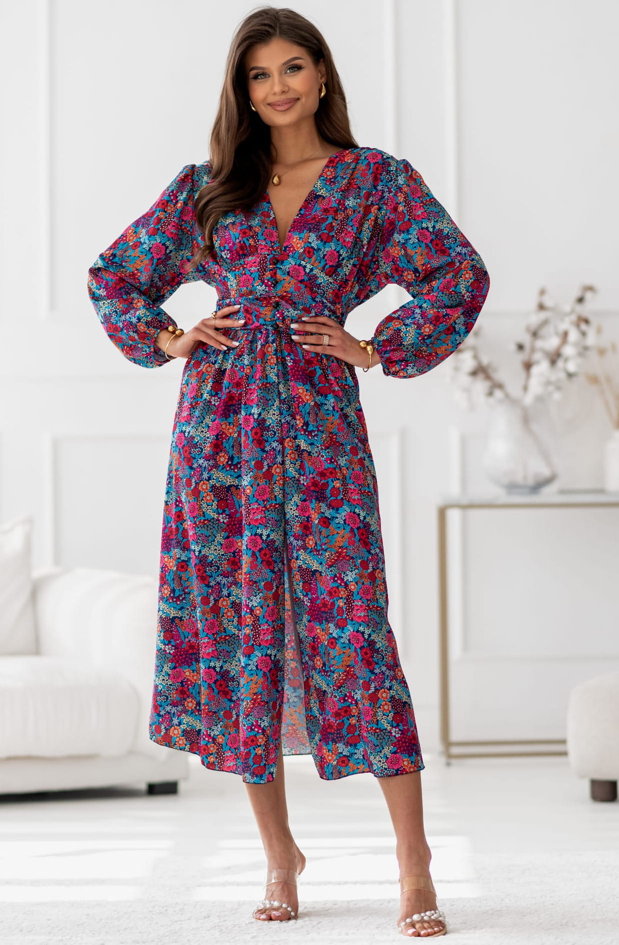 Sukienka Sorella z rękawem w kwiaty kolor 2