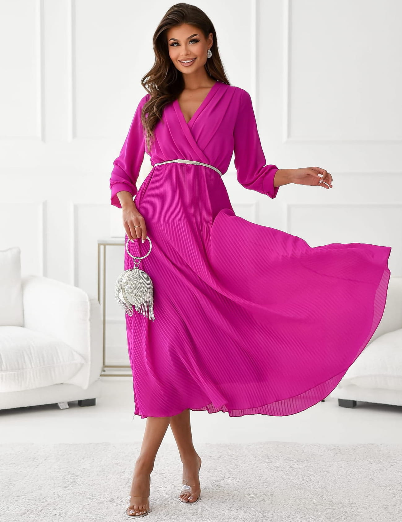 Włoska sukienka wizytowa z kopertowym dekoltem.Możliwość KP, rękaw długości 3/4. Sukienka sprzedawana bez paska widocznego na zdjęciach. Pasek można dokupić w dziale Galanteria.