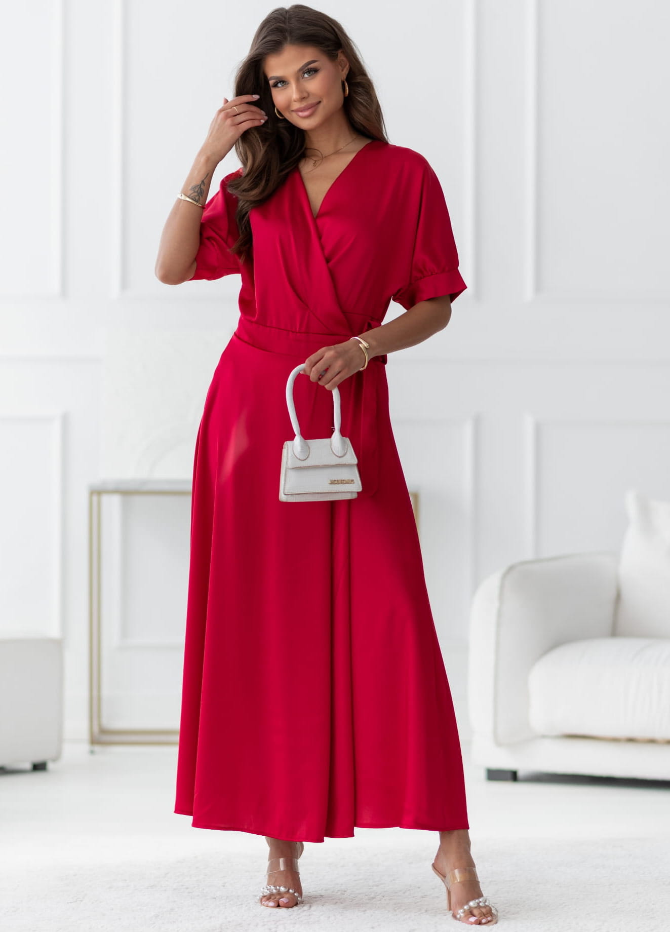 Sukienka kimonowa z wiązaniem MAXI satyna czerwona