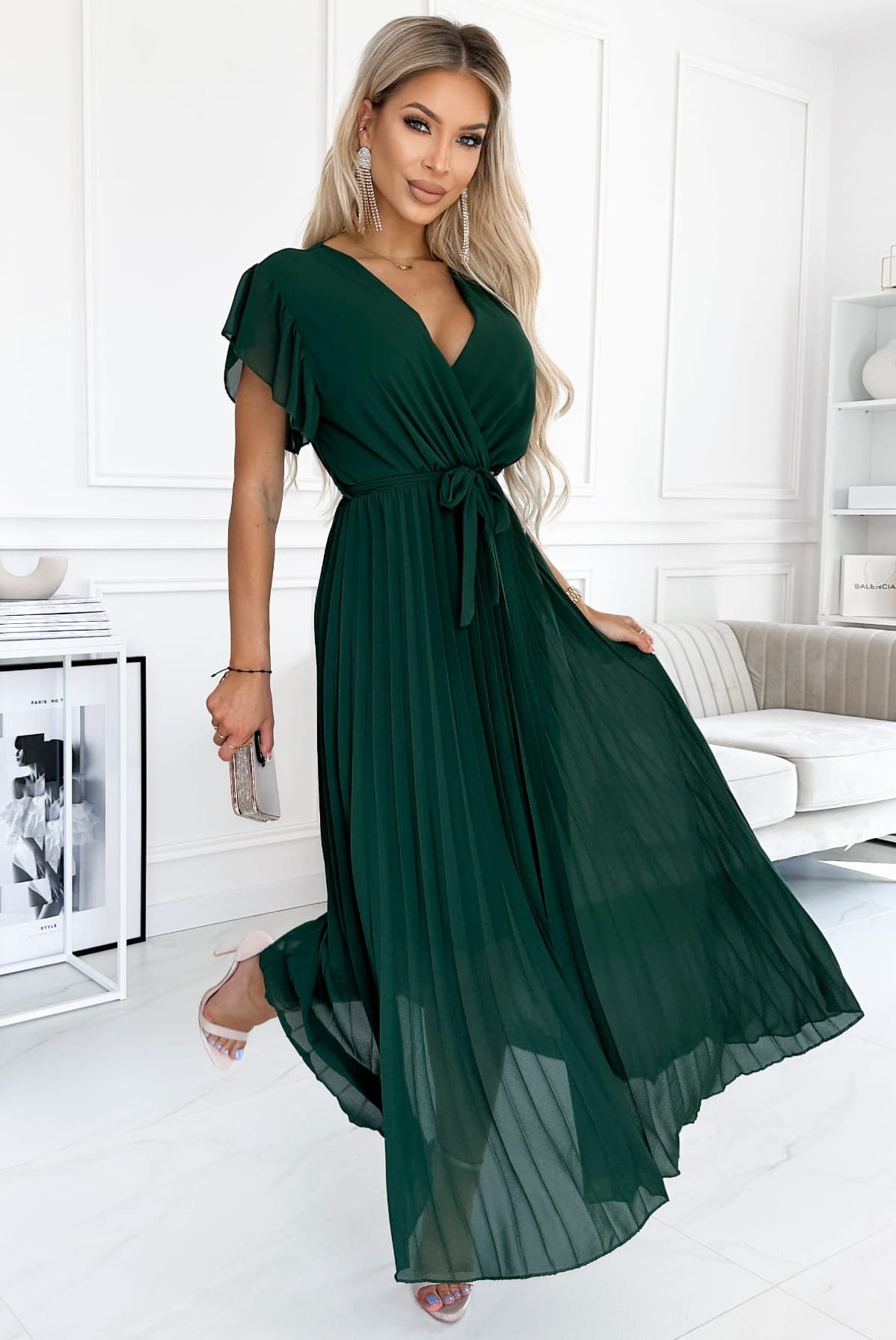 Sukienka kopertowa Piórka Plisa Maxi Gładka butelka
